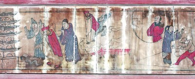 ①温州苍南县碗窑村上窑三官庙戏台上的“水漫金山”主题彩绘