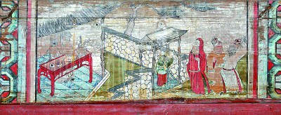 ②温州永嘉县北溪村杨氏宗祠戏台上的“三顾茅庐”主题彩绘